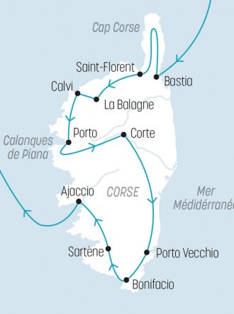 De ses plages de sable fin baignées par des eaux turquoise à ses villages perchés aux senteurs de maquis, la Corse vous séduira par son authenticité, sa culture unique et la chaleur de ses habitants. Cette île unique, la plus montagneuse et la plus verte de toute la Méditerranée, vous invite à découvrir une mosaïque de paysages naturels aussi multiples que contrastés : les côtes rocheuses, les gorges arides et sauvages, les Calanques de Piana ou le sévère Cap Corse.